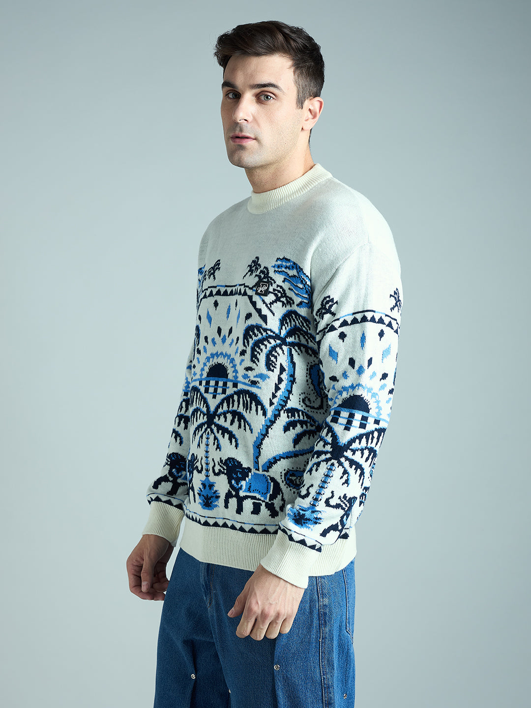 Stay warm in style with this Blue & White Tropical Knit Sweater. Crafted with soft premium yarn for comfort and durability, perfect for casual winter looks that stand out.