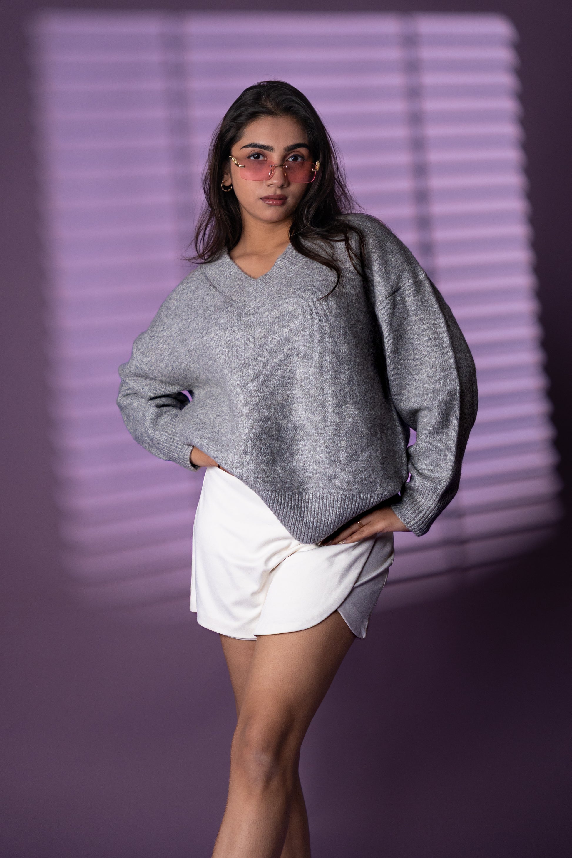 A refined grey sweater designed for effortless everyday wear. The soft knit construction and clean V-neckline create a relaxed yet polished look that works seamlessly.